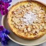 Scatter sliced almonds on top for that iconic crunch and bake at 350°F (180°C) for about 30 minutes. You’re aiming for a golden, slightly domed frangipane with edges that pull away gently from the pan. The aroma alone will pull everyone into the kitchen!