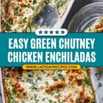 Green Chutney Chicken Enchiladas are a flavorful twist on classic enchiladas, combining a savory filling of cannellini beans, shredded grilled chicken, and aromatic spices, all wrapped in soft tortillas and topped with a tangy green chutney yogurt sauce and melted mozzarella cheese. Baked to perfection with a golden bubbly cheese crust, this dish offers a delicious blend of textures and vibrant flavors perfect for a satisfying meal.