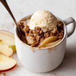 Microwave on high for three minutes. The apples should be tender but still hold their shape, and the topping will be bubbly and slightly crisp. Be very careful taking your mug out—it gets hot fast. I like to let it cool for a minute before digging in. For an extra treat, serve warm with a scoop of vanilla ice cream or whipped cream. It’s like a little hug in a mug!