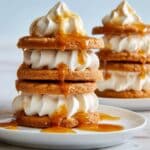 These Mini No-Bake Gingerbread Icebox Cakes are a delightful holiday treat featuring layers of thin gingersnap cookies and a luscious cream cheese and whipped cream filling, flavored with caramel and pumpkin pie spice. Perfect for an easy yet elegant dessert, they require no baking and develop a soft, cake-like texture after chilling.