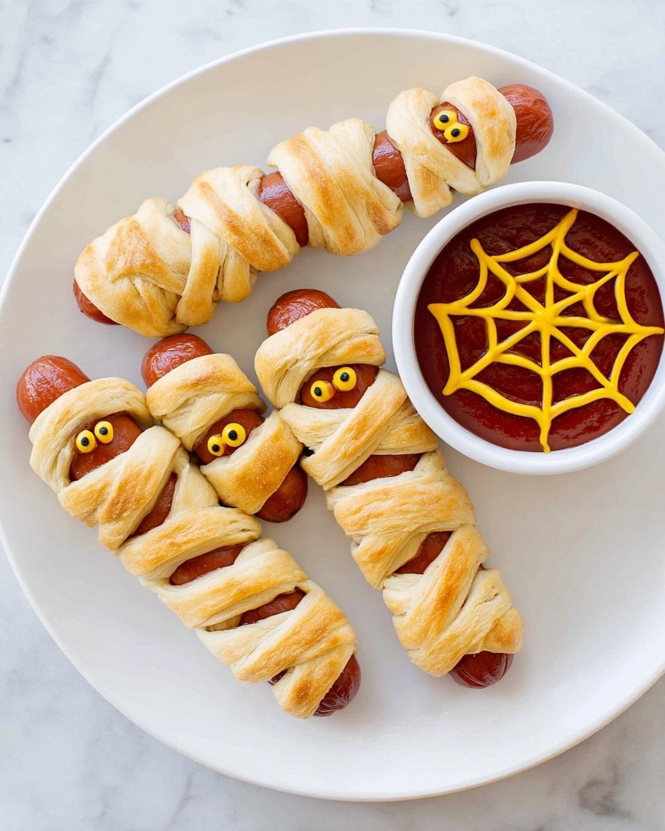 Since Mummy Dogs are pretty substantial on their own, I like pairing them with crunchy veggie sticks, like carrots and celery, or a crisp green salad to balance things out. For parties, serving with a variety of dipping sauces—think spicy sriracha mayo or honey mustard—takes these to another level.