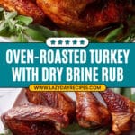• Dry-brining with a homemade spice rub is essential to achieve the perfect flavorful and crispy-skinned oven-roasted turkey.