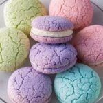 Delightfully colorful and soft pastel sugar cookie sandwiches filled with a creamy vanilla filling. These cookies are perfect for celebrations or a sweet treat, featuring vibrant pastel hues achieved with gel food coloring and a smooth, fluffy vanilla buttercream between two tender sugar cookies.