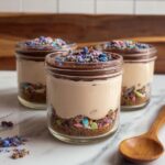 For birthday parties or brunches, I’ve arranged these mousse cups in dessert trays lined with mini spoons and cute labels. They’re a hit at potlucks because everyone loves the individual servings and it looks so pretty when you scatter the mini cookie dough balls on top like little treasures.