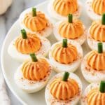 Definitely! This Pumpkin Deviled Eggs Recipe scales well—just keep your mixing bowl large enough to combine the filling evenly and pipe carefully to maintain the pumpkin shapes.