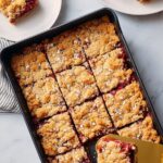 - Bake: Bake the assembled bars in the preheated oven for 30 to 35 minutes or until the top is golden brown and set.