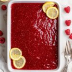 - Serve: Before serving, spread the remaining raspberry jam evenly over the top of the tiramisu. Decorate with fresh raspberries and lemon slices as desired.