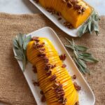 This Roasted Butternut Squash with Maple Pecans recipe features thinly sliced butternut squash roasted to tender perfection, brushed with a fragrant sage butter mixture, and topped with sweet, toasted maple pecans for a delightful combination of flavors and textures. It’s an elegant yet simple side dish perfect for fall or holiday meals.