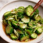 This Spicy Cucumber Salad is a refreshing and flavorful dish featuring crisp mini or Persian cucumbers sliced in an eye-catching accordion style, coated in a tangy, slightly sweet, and spicy dressing. Garnished with green onions and toasted sesame seeds, it offers a perfect balance of heat and freshness, ideal as a light side dish or a snack for warmer days.