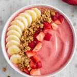 A refreshing and nutritious Strawberry Banana Smoothie Bowl that blends frozen bananas and strawberries into a creamy base, perfect for a quick breakfast or snack. This smoothie bowl can be customized with a variety of optional add-ins and toppings to suit your taste and nutritional needs.