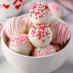 - Decorate Truffles: Drizzle the melted pink candy melts decoratively over the remaining coated truffles for a festive look.