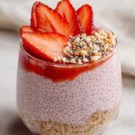 A refreshing and nutritious Strawberry Crumble Chia Pudding that combines creamy strawberry-flavored chia pudding with a crunchy almond date crumble topping. This vegan, dairy-free dessert or breakfast option is naturally sweetened with maple syrup and packed with wholesome ingredients, perfect for a healthy, make-ahead treat.