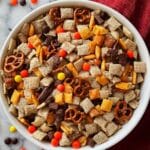 You can swap Reese’s Pieces for other candies like M&Ms, dried fruit pieces, or simply omit the candy altogether. The mix is still delicious and flavorful without the peanut butter element.