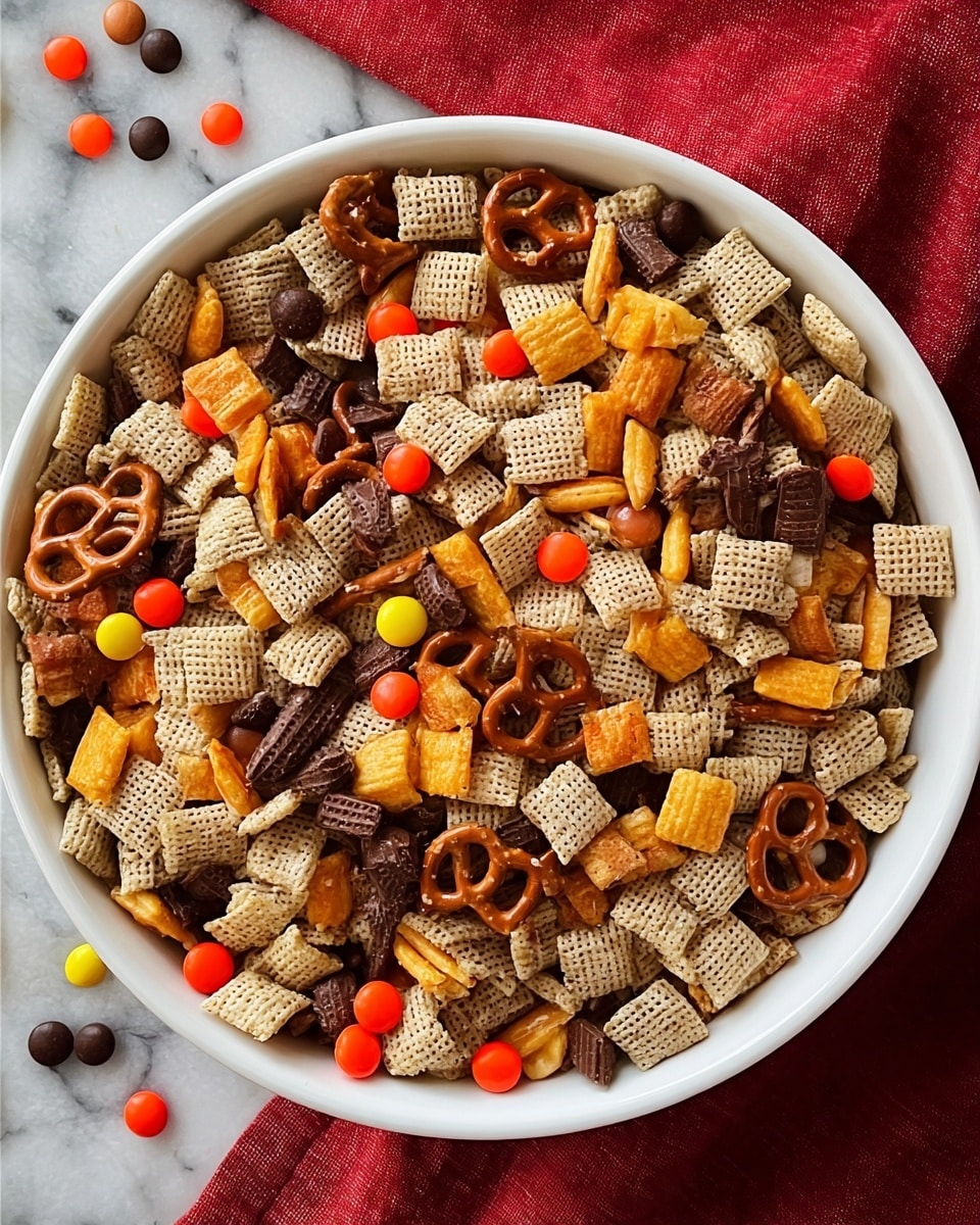 Sweet & Salty Chex Mix is a delightful snack mix combining crunchy cereals, pretzels, and crackers coated in a sweet and salty glaze made from brown sugar, honey, melted butter, and kosher salt. Baked to perfect crispness and finished with Reese’s Pieces for a candy surprise, this mix is ideal for game day, lunch boxes, or everyday snacking.
