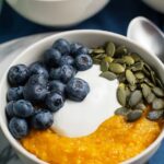 - Assemble the Bowls: Divide the fluffy sweet potato mixture evenly into four bowls. Top each bowl with fresh blueberries, pumpkin seeds, and a dollop of plain Greek yogurt.