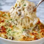 For the best texture when reheating, I prefer the oven over the microwave. Cover the dish with foil and heat at 350°F for 20 minutes, then remove the foil and bake another 5-10 minutes to refresh that bubbly top. If you’re short on time, microwave reheats fine—just add a splash of cream or broth and heat in intervals to avoid drying out.