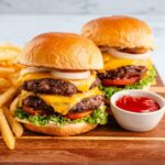 This Classic Cheeseburger Recipe features juicy, perfectly seasoned ground beef patties grilled to your preferred doneness, topped with melted cheddar or American cheese, crisp lettuce, ripe tomato slices, and thinly sliced onions. Enhanced with a tangy homemade burger sauce, this burger offers a nostalgic All-American taste reminiscent of iconic fast-food favorites.