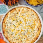 Warm Crack Chicken Dip is a rich and creamy baked appetizer featuring tender cooked chicken, crispy bacon, tangy ranch seasoning, and melty cheddar cheese, all combined with cream cheese and sour cream for a deliciously irresistible crowd-pleaser perfect for parties and game day.