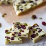 A delightful White Christmas recipe featuring a creamy blend of white chocolate, crunchy pistachios, and tart dried cranberries. Perfect as a festive treat or gift, this no-bake dessert sets quickly in the fridge and offers a rich, nutty, and fruity bite.